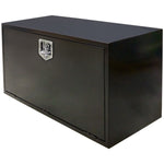 Heavy duty underbody truck and trailer toolbox with drop down door is available in a black powder coated finish.